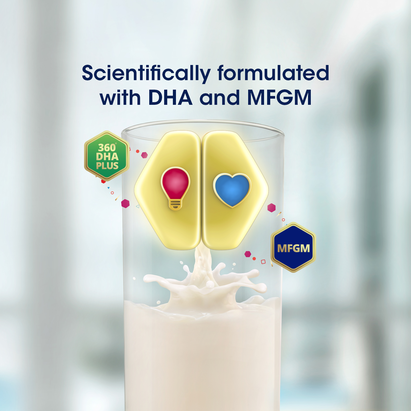 Milk Fat Globule Membrane (MFGM) is a natural source of phospholipids and spingomyelin, derived from whey protein Formulated with 360’ DHA Plus to help meet recommended daily DHA intake*.