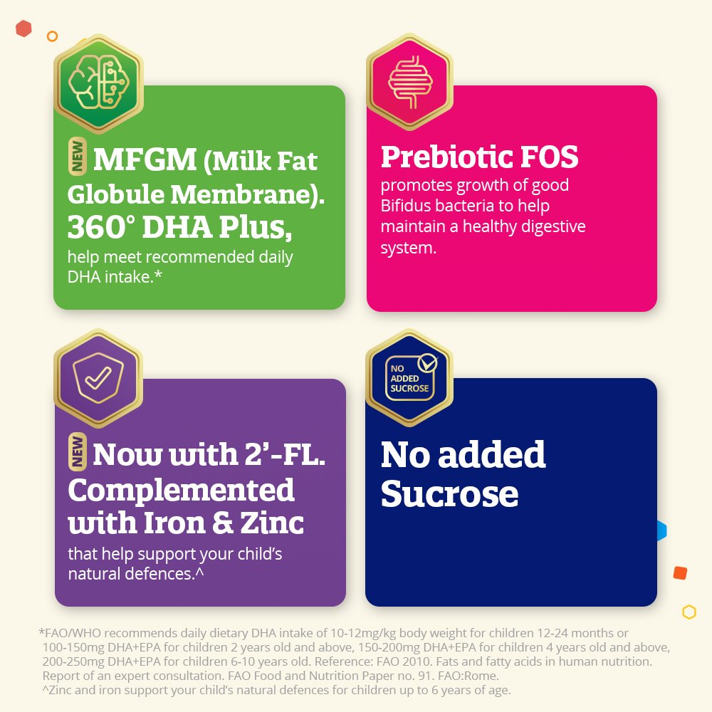 With over 100 years of experience in pediatric nutrition, Mead Johnson Nutrition has scientifically formulated Enfagrow Pro A+ Stage 4 with a unique blend of nutrients that are important for overall mental and physical development.